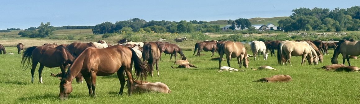 The weanlings are branded each year at the end of June. We lead them, vaccinate, worm, clip their manes and take sale photos all in the same day. Roaching the manes gives the colts a cleaner look and showcases their neck. It’s always a labor intensive day, but of course well worth it in the end!